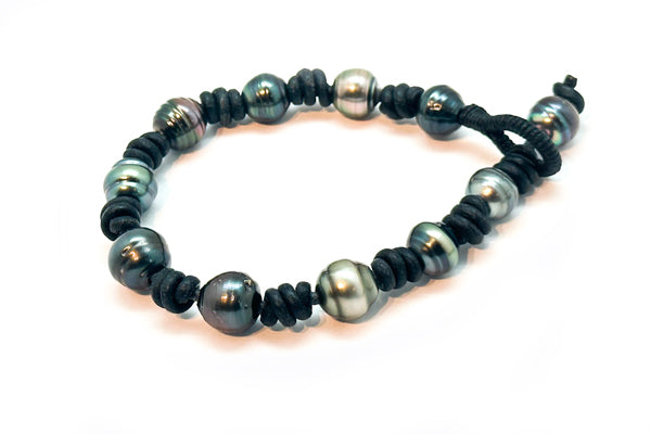 Tahitian cultured pearl leather bracelet w/ natural grooved "circlé" markings. Great for a more casual look and everyday wear. Suitable for men or women.
