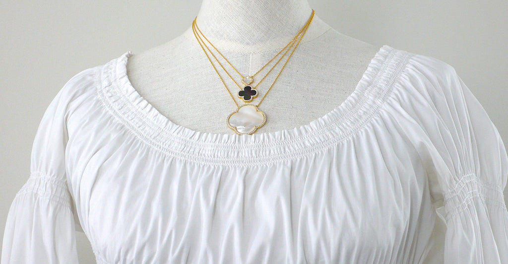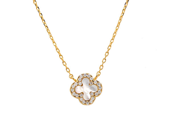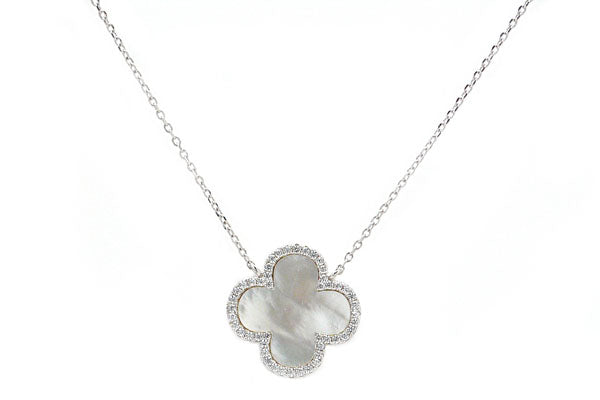 Carved White Mother of Pearl & CZ Quatrefoil Necklaces - Assorted Sizes