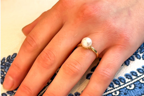 Classic south sea cultured pearl solitaire ring featuring a beautiful white South Sea cultured pearl