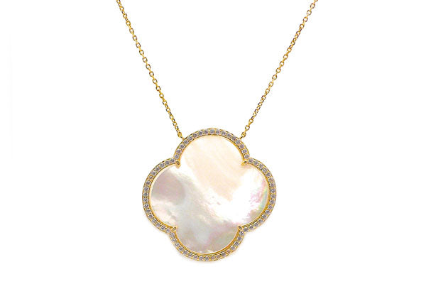 Carved White Mother of Pearl & CZ Quatrefoil Necklaces - Assorted Sizes